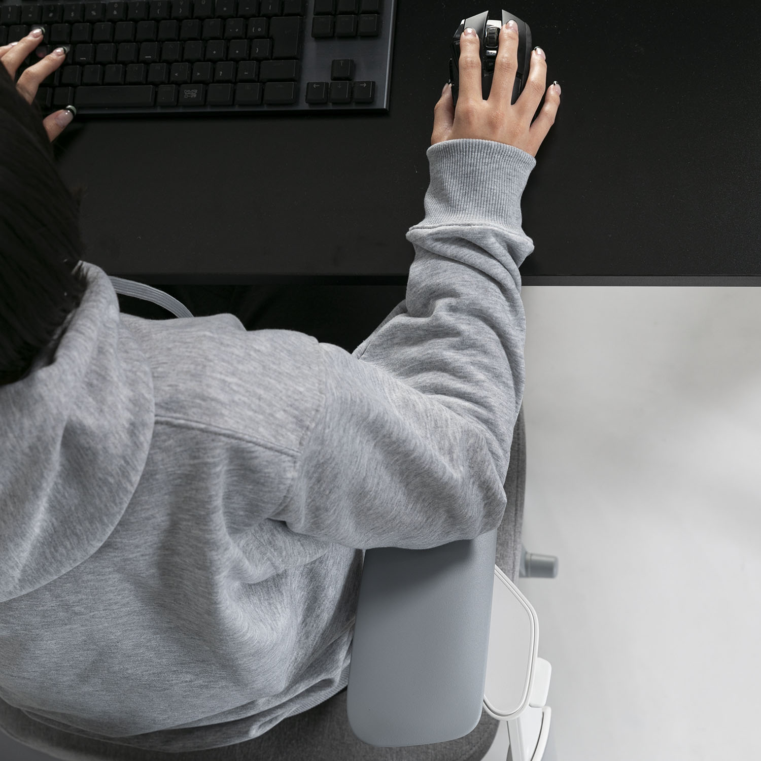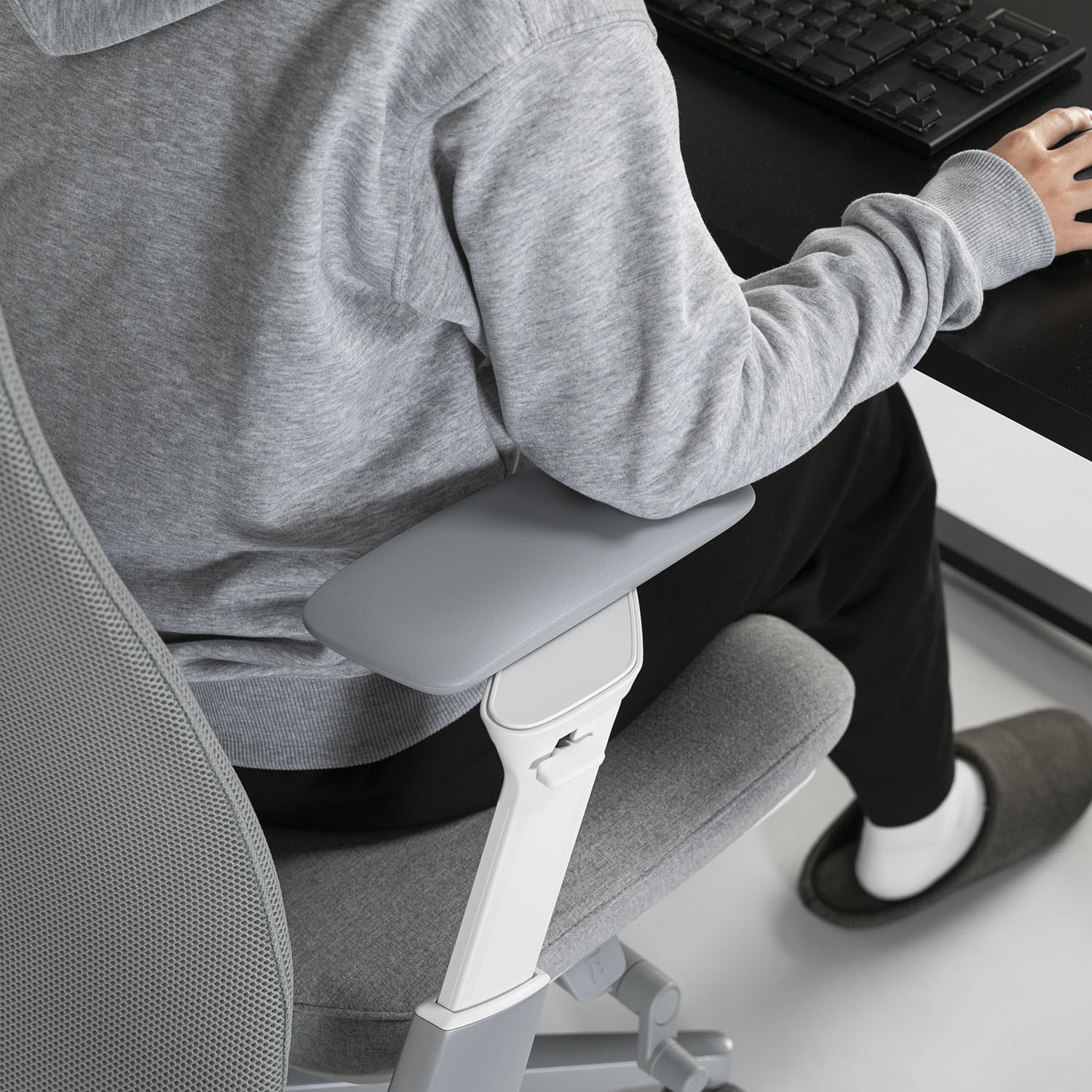 さらに、前後に大きくスライドする「2wayモーションアーム」は、姿勢に応じて肘の位置を最適な場所に移動させ、腕を安定させることで肩や首の筋肉の緊張を緩和し、肩こりを予防。