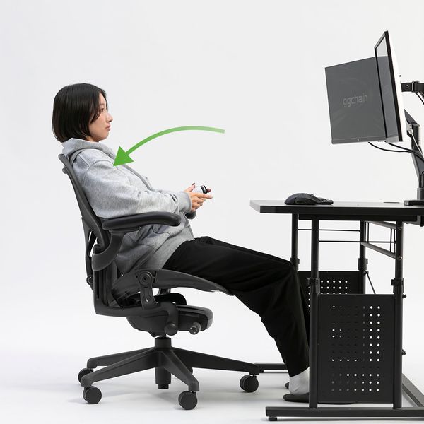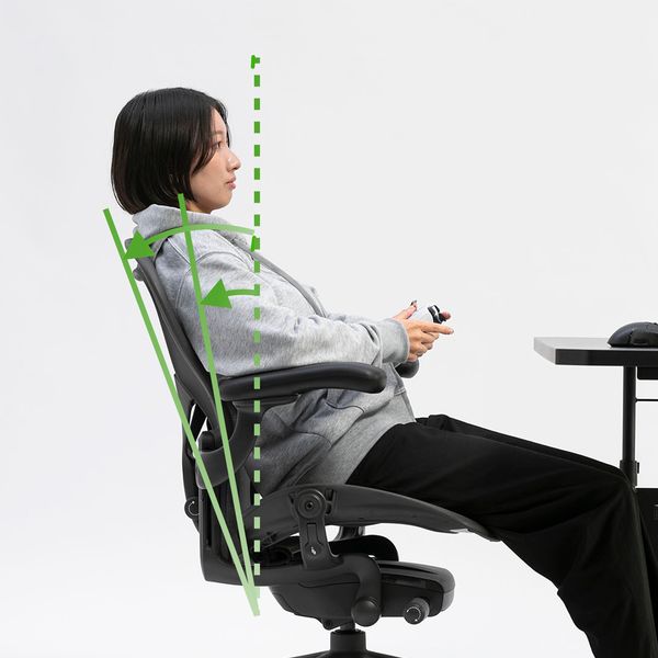 アーロンチェア独自のハーモニック2チルトは、重心の移動のみで体勢変更が可能。チェアがプレイヤーの動きを自然にサポートします。