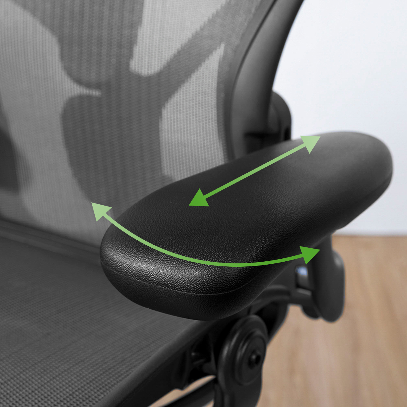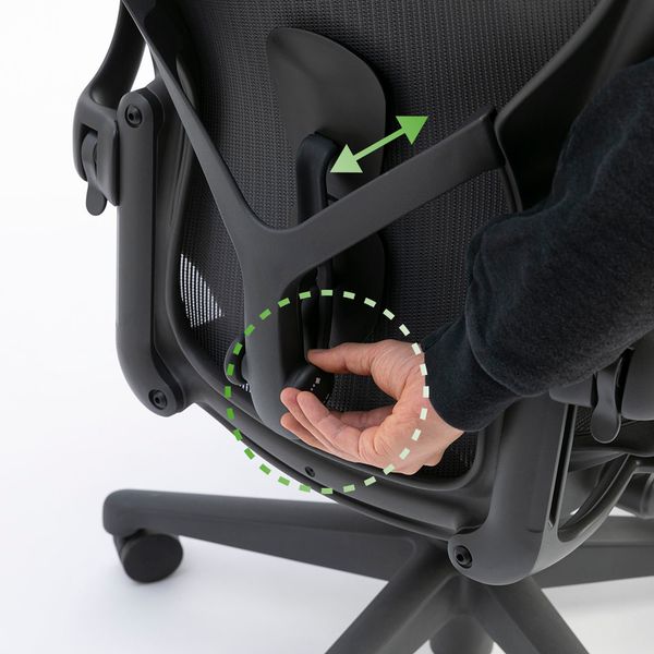 ランバーサポートの高さやポスチャーフィットSLの前後位置は、チェアに腰掛けた状態で調節可能。