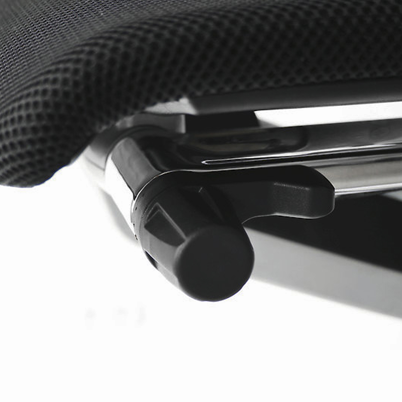 座面下に集約された2つのレバーにより、「座面高さの上下昇降」「リクライニングの硬さ調節」「リクライニングロック」を直感的に操作することが可能。