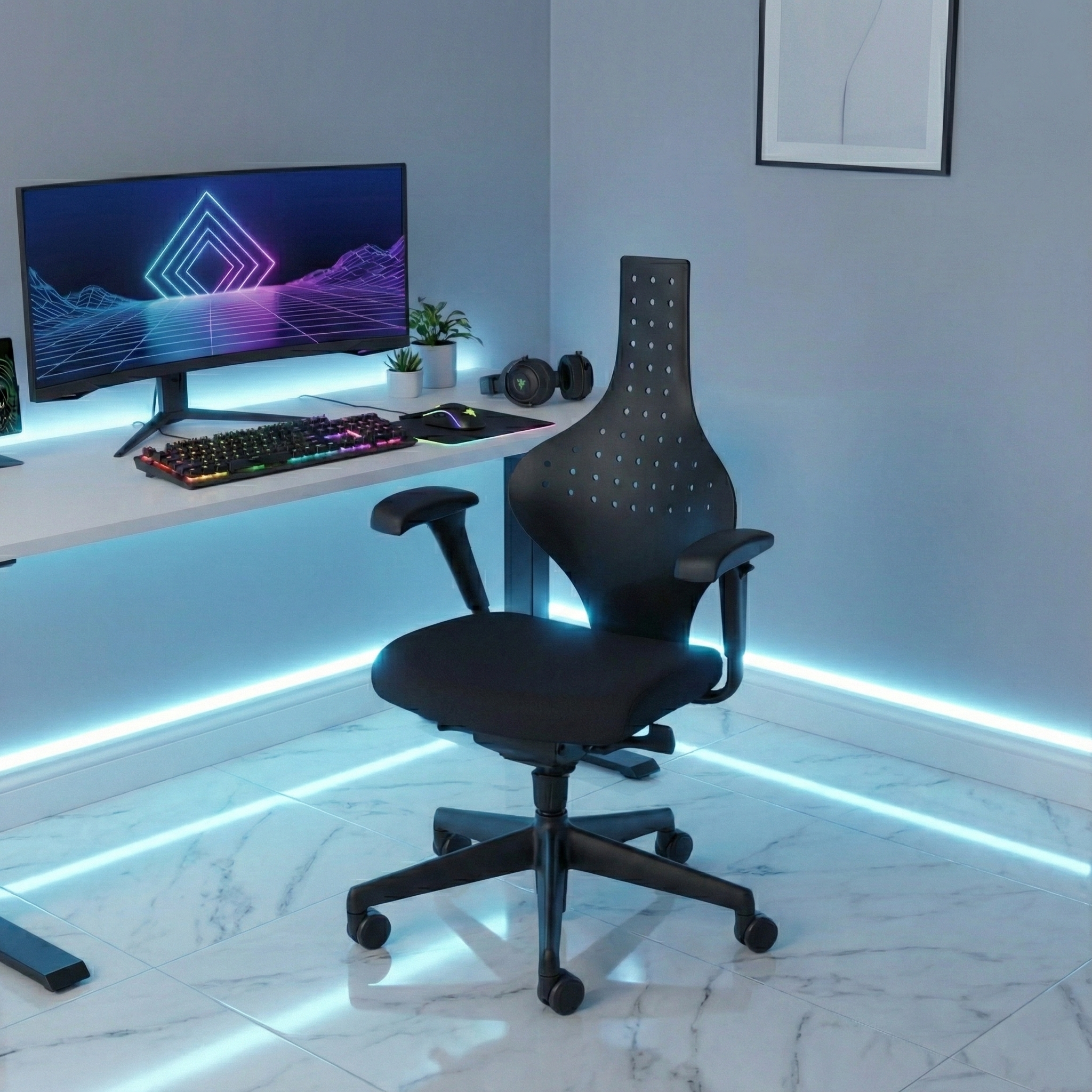 カナダ・トロントに拠点を置くKEITHAUER。そのチェアJr.と呼ばれるチェアの最大の特徴は、他に類を見ない背もたれの形状。肩甲骨部分が大胆にカット&S字カーブにとことん沿った形状が、腰と背骨をサポートし、腕と肩の可動域をキープ。集中力や瞬発力が試される格闘ゲームなど上半身がよく動く方には、かなりストレスフリーな一脚といえるでしょう。