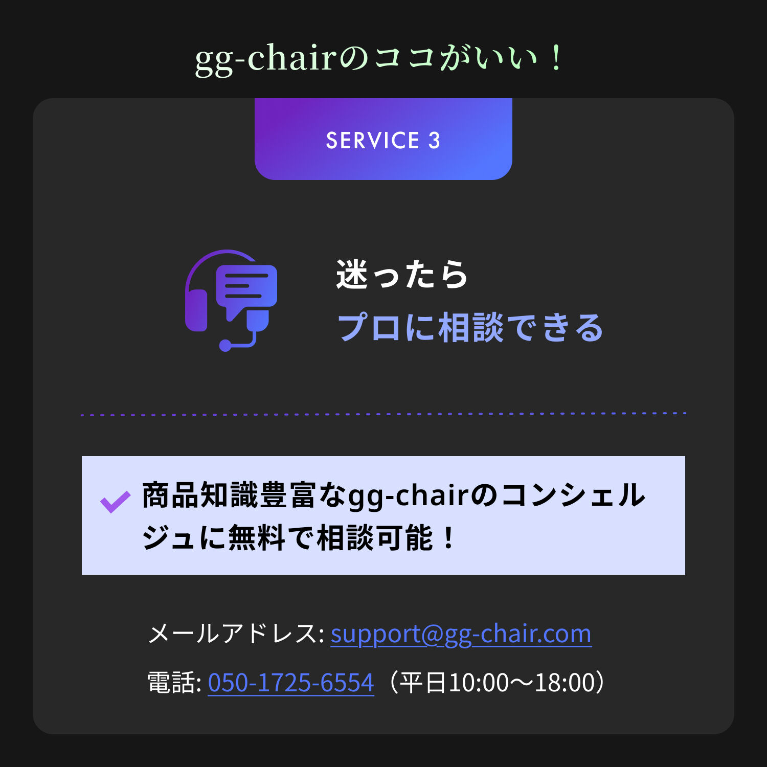 メールアドレス:support@gg-chair.com